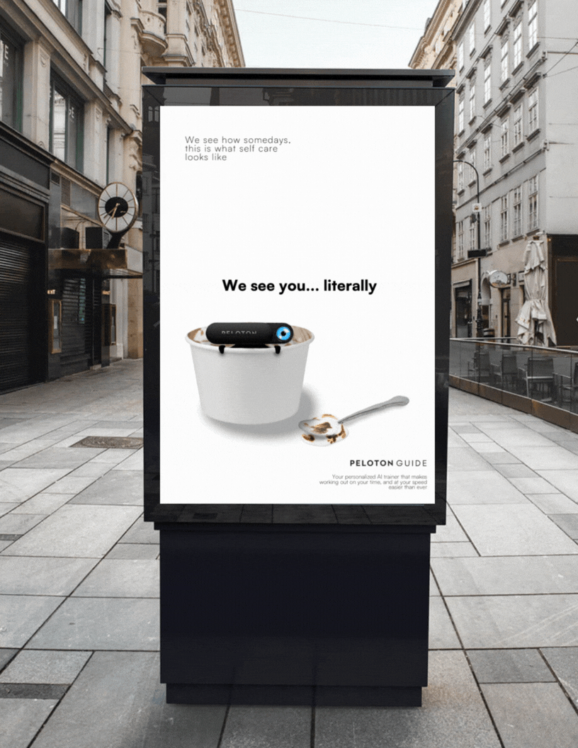 Giant blinking peloton guide characters will be placed in high traffic areas in prominent US cities.