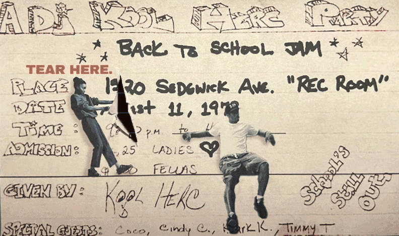 Vinyl DJ parties hosted by Technics and marketed through “tear away” physical flyers that reference the legendary party flyer known to have started HipHop.